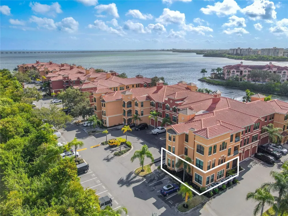 MUST SEE this condo, located within the gated, waterfront community of The Grand Bellagio at Baywatch, this meticulously maintained first-floor corner Frascati floor plan offers 2 bedrooms, 2 full baths, and a versatile bonus room. The residence includes an assigned parking space #204 and a private storage unit (S-109) conveniently located across the hall, offering approximately 52 square feet with 9’4” ceilings—ideal for organized, accessible storage. Inside, the layout is thoughtfully designed with a three-way split floor plan, positioning the primary suite, 2nd bedroom, and bonus room for privacy, while the living, dining, and kitchen areas anchor the center of the home. Large format tile flooring is laid throughout the home and crown molding runs throughout the main living spaces! The living room features a built-in gas fireplace and a built-in entertainment center, creating a comfortable focal point for everyday living and entertaining. The dining area is well defined and flows seamlessly into the kitchen, which offers warm wood cabinetry, dark granite countertops, elegant tiled backsplash, raised breakfast bar, a large closet pantry, and stainless steel appliances, including a smooth-top range, microwave, dishwasher, and refrigerator with indoor water and ice. A glass door provides easy access to the screened terrace with 4x4 pavers, shared with the primary suite. The primary suite is spacious and private, featuring tile flooring, a Harbor Breeze ceiling fan, and direct access to the screened terrace. The ensuite bath includes a long double-sink vanity with solid-surface counters, ample storage, a soaking garden tub, and a separate enclosed shower. The spacious walk-in closet offers wire shelving and a built-in Bunker Hill wall safe. The second bedroom is well-proportioned. It is located near the second full bath, which serves as a guest bath or en suite. Additional upgrades to the condo include: Garbage disposal (2022), painted interior (2023), double pane hurricane impact windows(2024), new roof, siding, roads, and landscaping making the condo and community like-new! The Grand Bellagio delivers a resort-style waterfront lifestyle, featuring amenities such as a 6,800 sq. ft social villa, a fitness center, billiards and conference rooms, a geothermal heated pool and spa, poolside cabanas, kayak and sun deck pavilions, tennis courts, a dog park, a sand volleyball court, a playground, a car wash station, and a 1.5-mile lighted waterfront promenade. The community features The Docks at Bellagio, an owners-only slip marina. Located conveniently in Clearwater near shopping and dining, The Grand Bellagio places you approximately 8.5 miles from the beaches, 4 miles from St. Pete–Clearwater Airport, and 14 miles from Tampa International Airport. Residents enjoy a community with no short-term rentals, offering relaxed, resort-style living as a primary residence or second home.